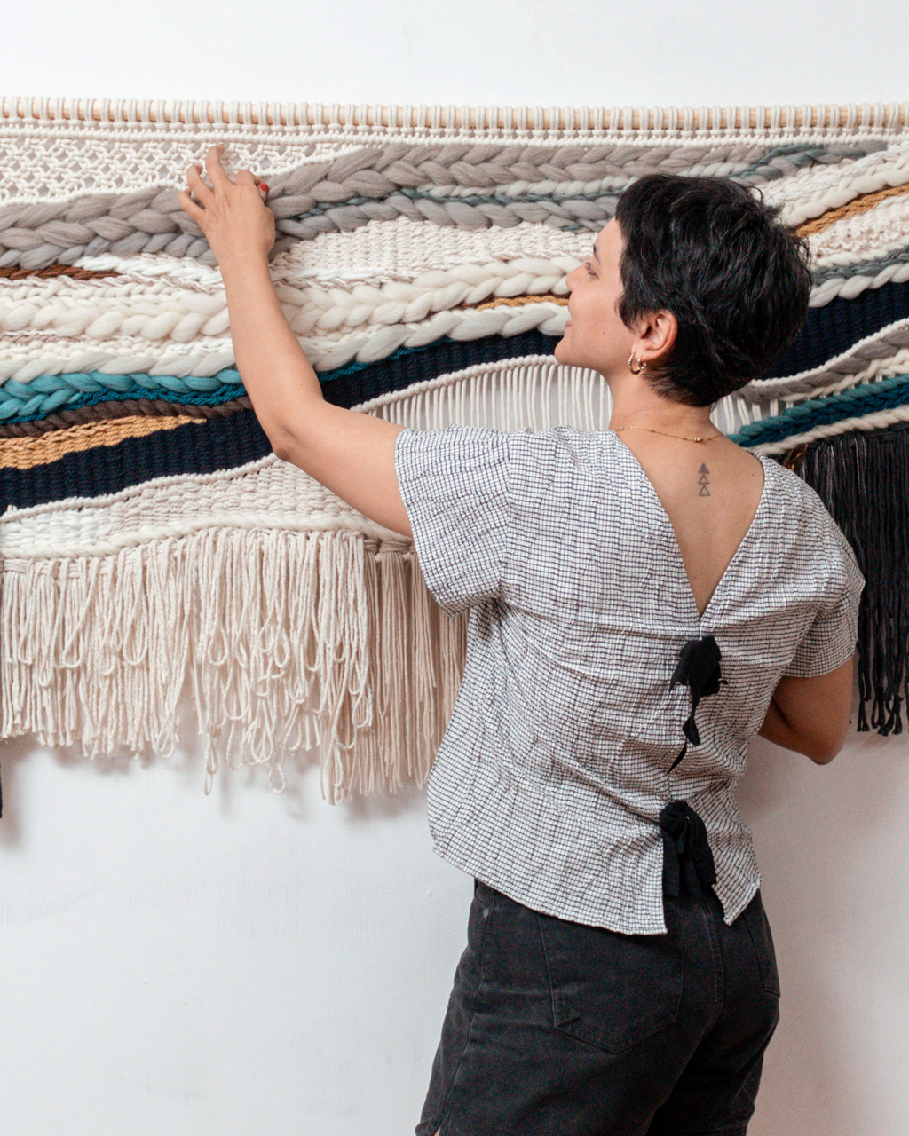 Crear obras personalizadas es una de las partes más significativas de mi trabajo. Disfruto transformar ideas en piezas textiles únicas que conectan con quien las encarga y con el espacio donde van a habitar. Cada creación es una oportunidad para reflejar identidad, textura y emoción.